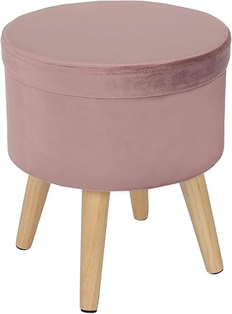 Esituro Som0055 Tabouret Pouf Rangement Rose Tabouret Rond Rembourre En Velours Couvercle Amovible Amazon Fr Cuisine Maison